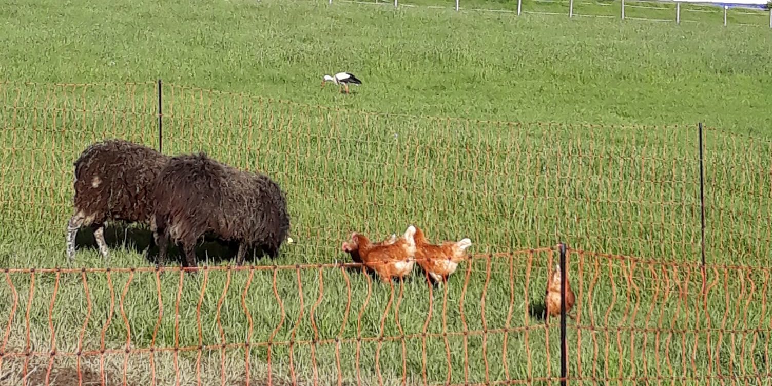 Heute hat ein Storch unser Hühnermobil besucht. :-9 Der fühlt sich wohl genau so wohl wie unsere Hühner.